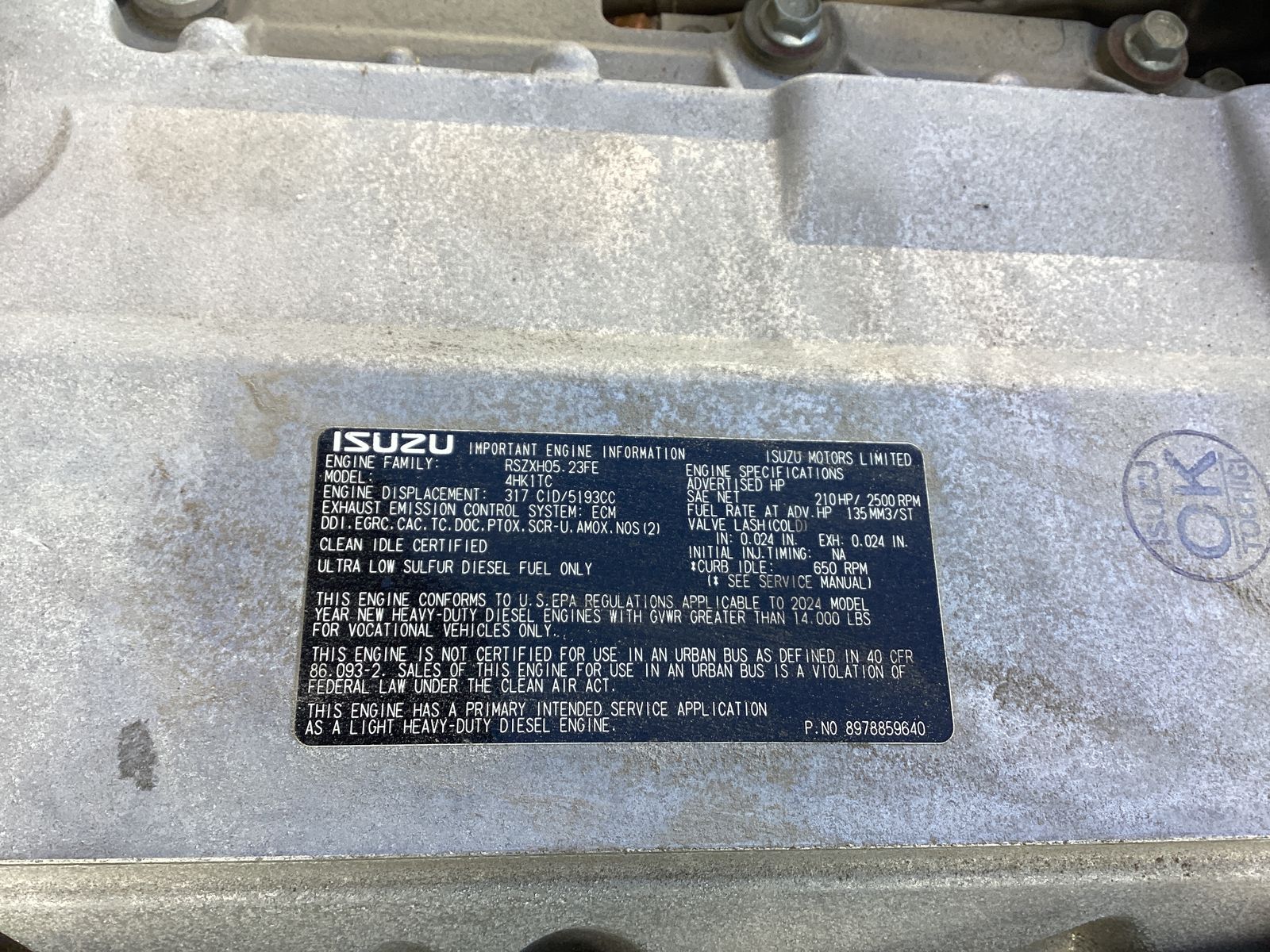 - engineISUZU 4HK1-TC 210 hp 2500 rpm