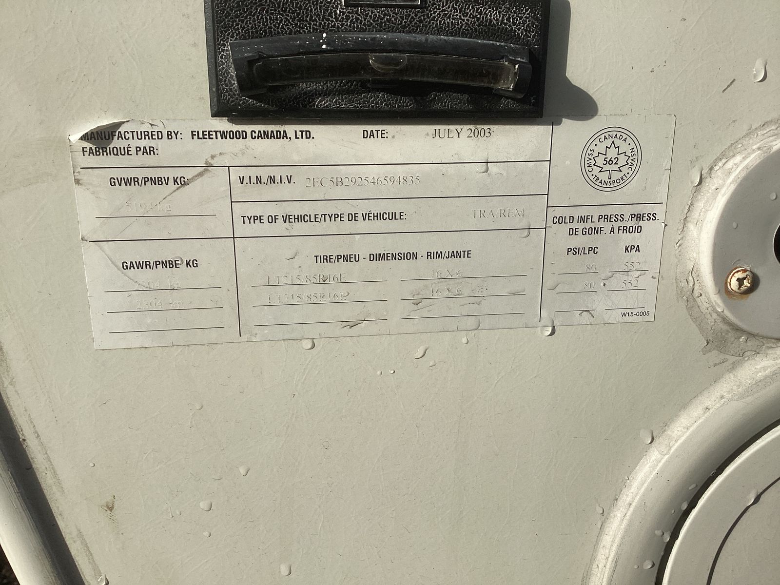 - Vin #2EC5B292546594835
