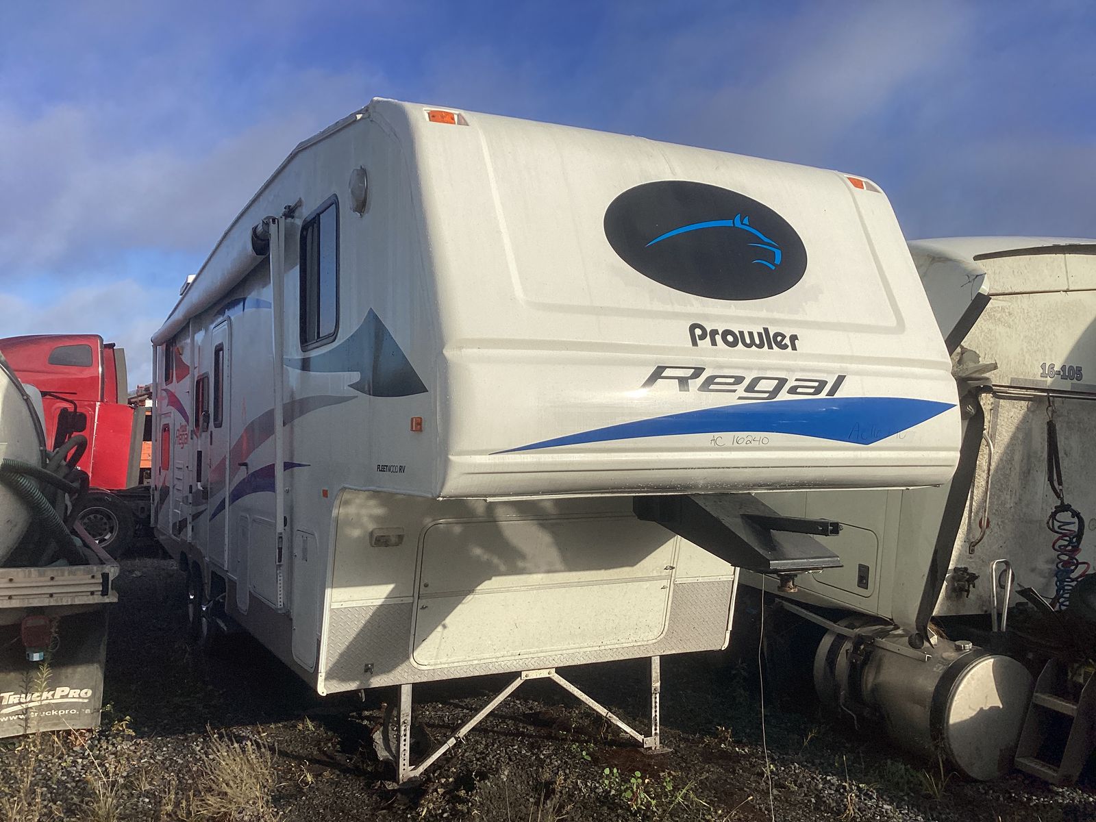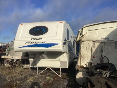 2004 PROWLER FIFTHWHEEL WITH SLIDER, MODEL 2952B, ROOF DAMAGE.