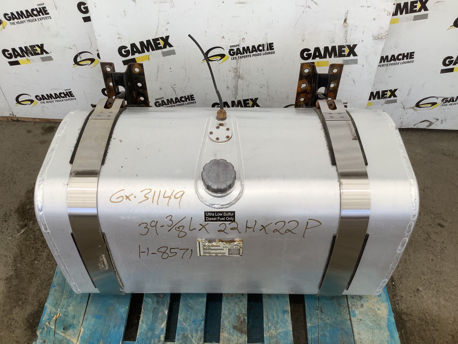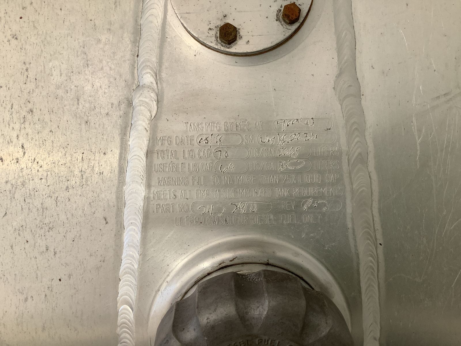 - Comments RIGHT SIDE DIESEL TANK (PASSENGER) MEASURES 29.5’’(W)X22’’(H)X22’’(D), CAPACITY 75 GALLONS/284 LITERS MACK FUEL TANK