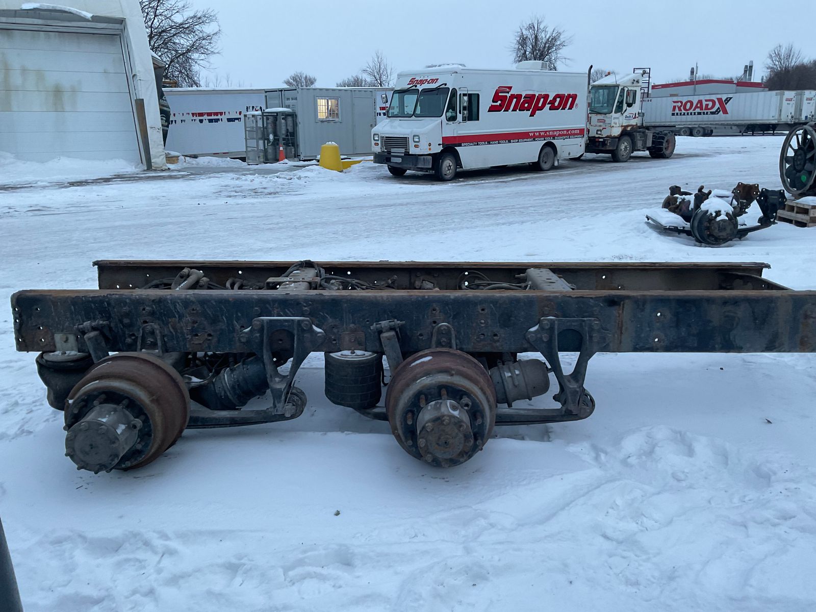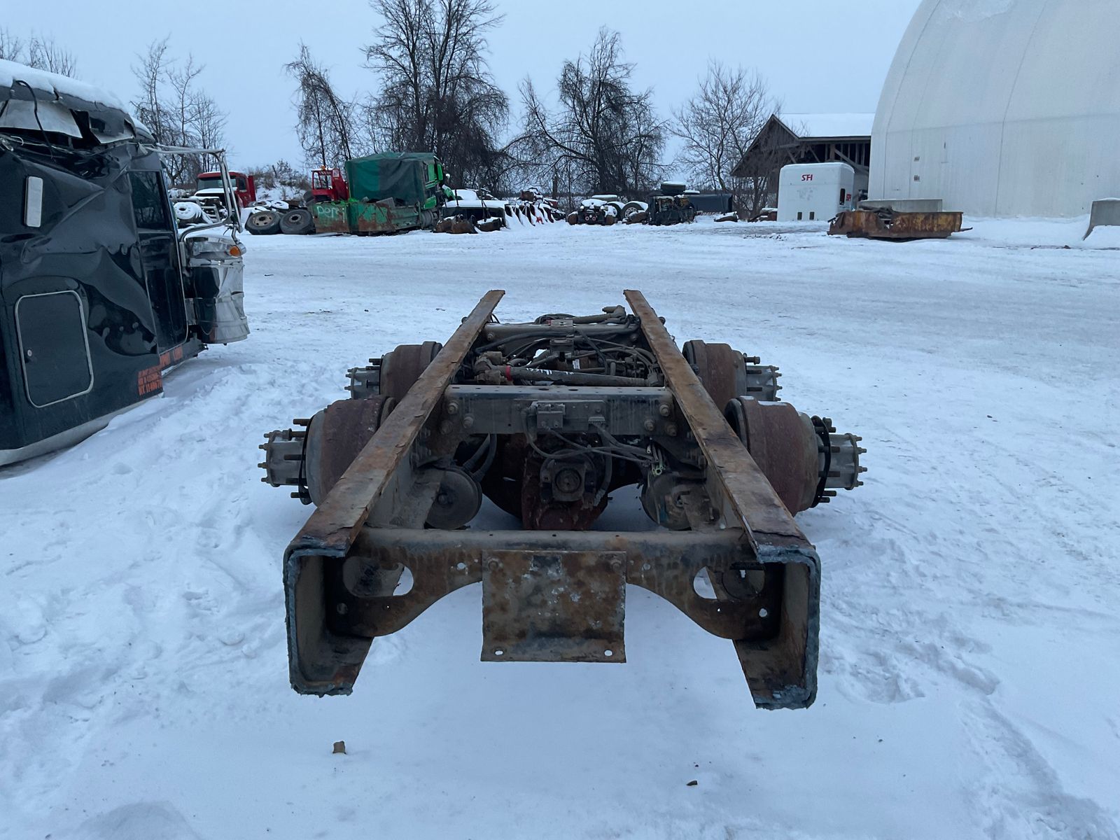 - Comments COMPLETE FRAME, FRONT AXLE IS 20 000 POUNDS. RUBBER BLOCK SUSPENSION, 46K, 4.10 RATIO, DUMP BOX 20’ LANAU