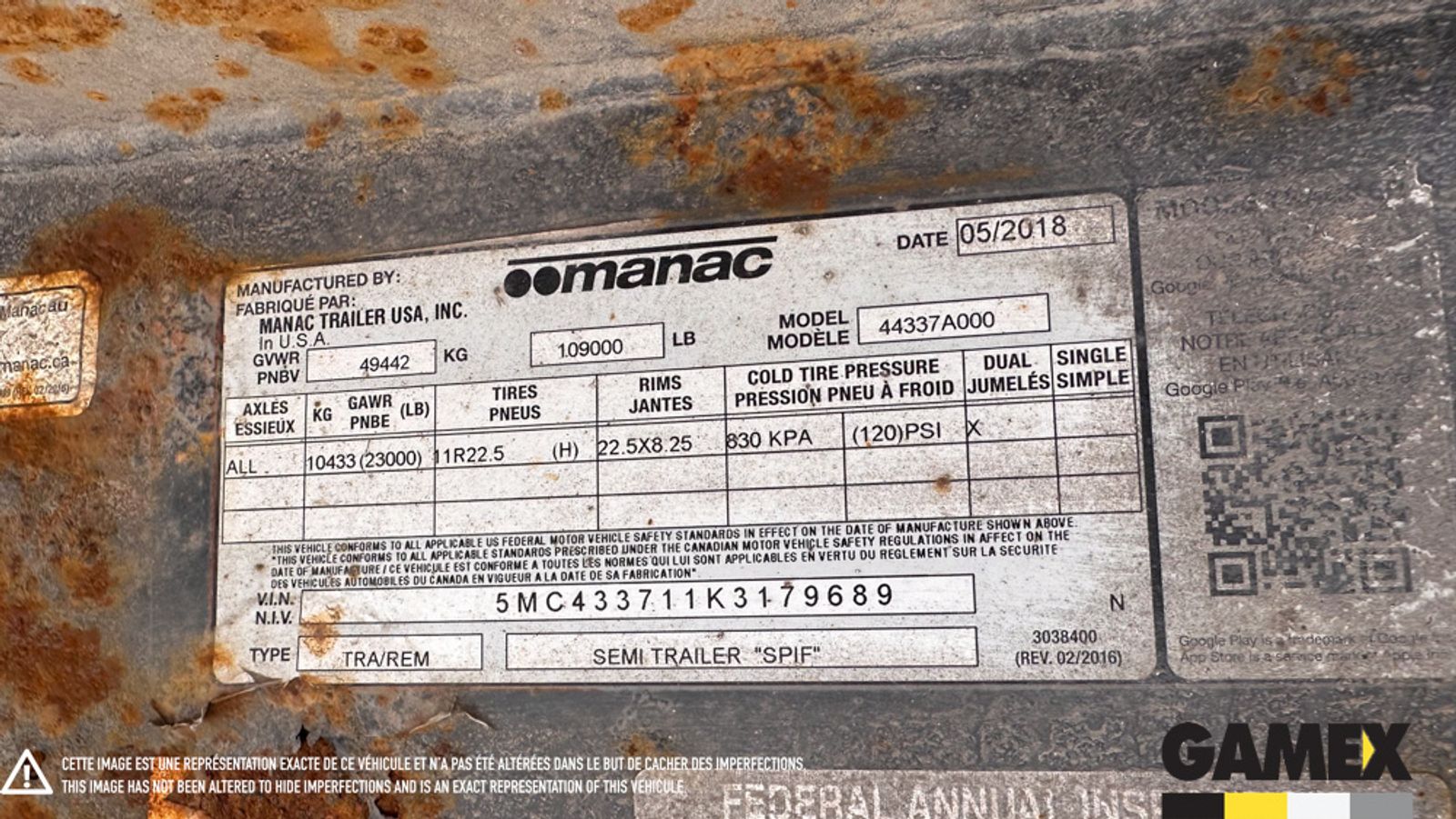 - Numero de serie del remolque5MC433711K3179689