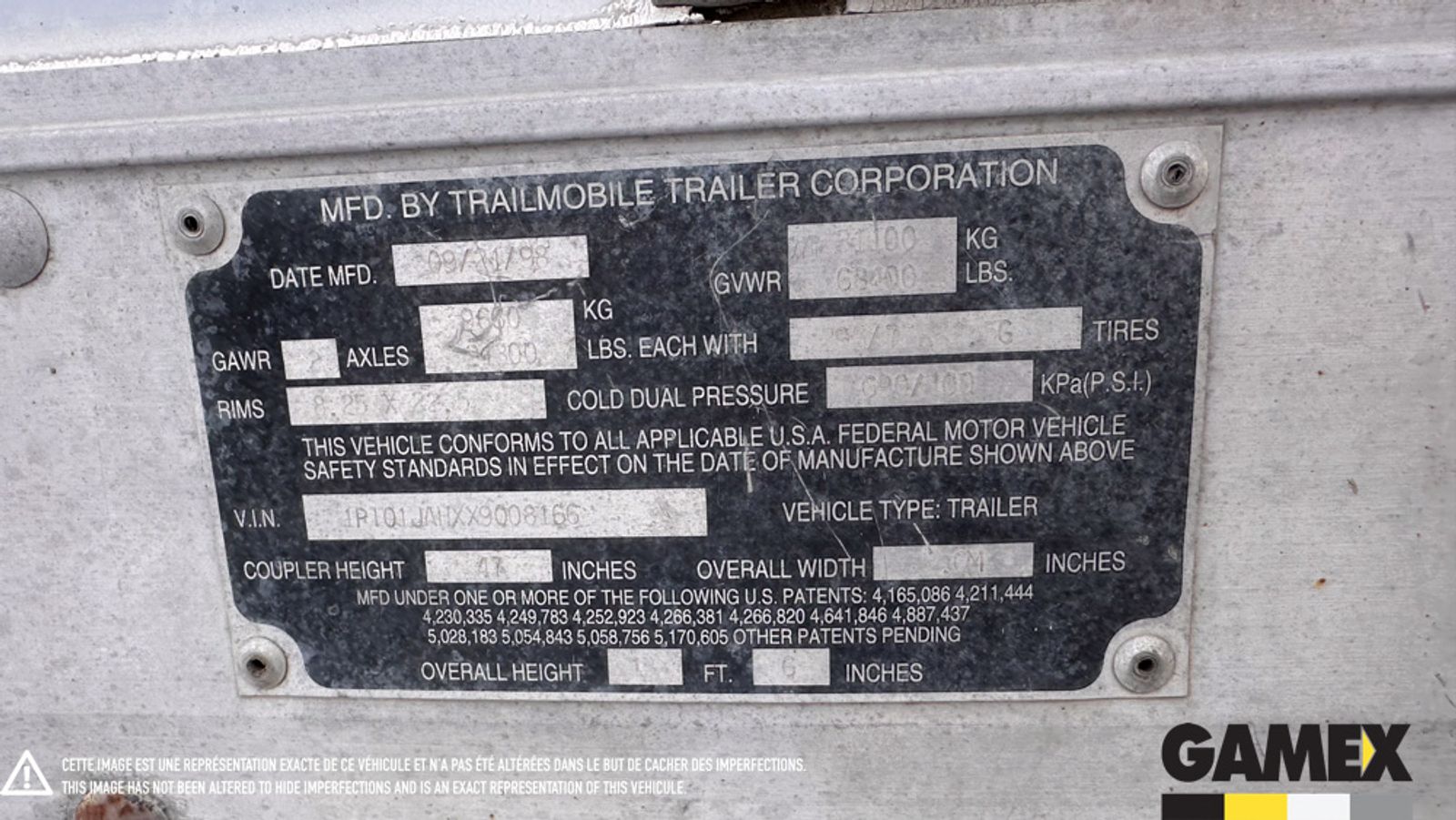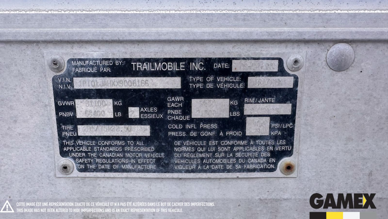 - # serie de la remorque 1PT01JAHXX9008166